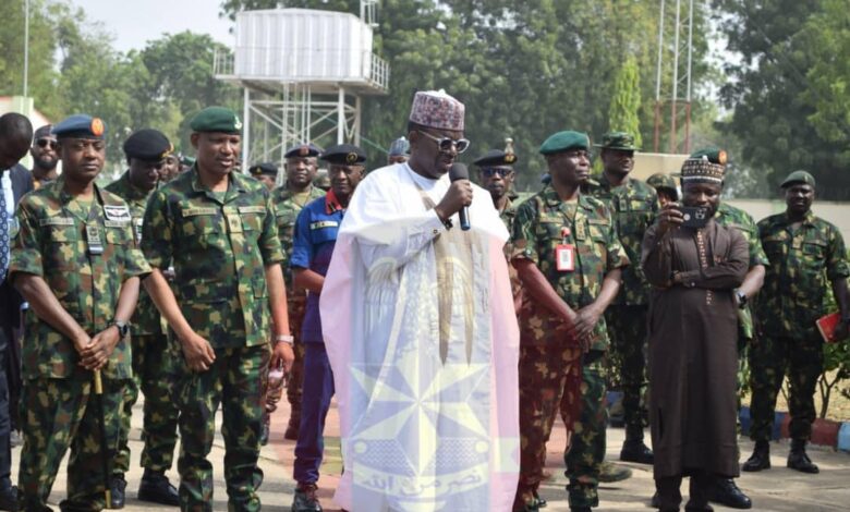 The statement noted that Dr. Matawalle visited the Theatre Command Headquarters in Gusau on Friday, shortly after observing the Juma’at prayers at the Command Mosque on November 14, 2025.