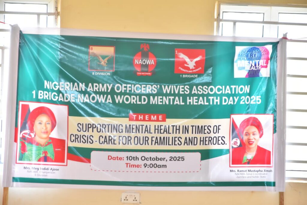 The Nigerian Army Officers’ Wives Association (NAOWA), 1 Brigade Chapter, has commemorated the 2025 World Mental Health Day with a series of humanitarian and awareness activities in Gusau.